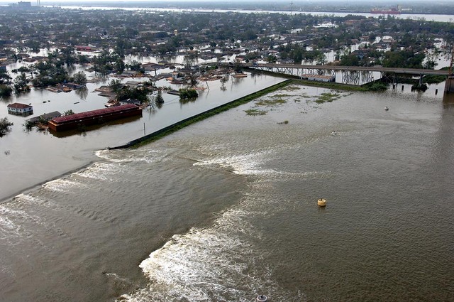 Hampir seluruh kota dikepung banjir, 20.00 orang mengungsi di Superdome tanpa supply yang cukup dan 30.000 lainnya mencoba keluar dari kota. Dengan kondisi yang sangat memprihatinkan New Orleans berubah menjadi cerita mengerikan dari sebuah pemerintahan yang terlantar. Kota yang mereka tinggalkan hampir terhapus dari peta karena topan Katrina yang menerjang area hingga 90.000 mil persegi di Louisiana, Missisipi, dan Alabama. Lebih dari 1300 orang tewas dan mayat-mayat mereka masih ada yang belum dipindahkan hingga 8 bulan kemudian. Kerugian ditaksir mencapai 200 miliar dollar, bahkan bisa bertambah hingga 300 miliar dollar.Image satelit badai Katrina